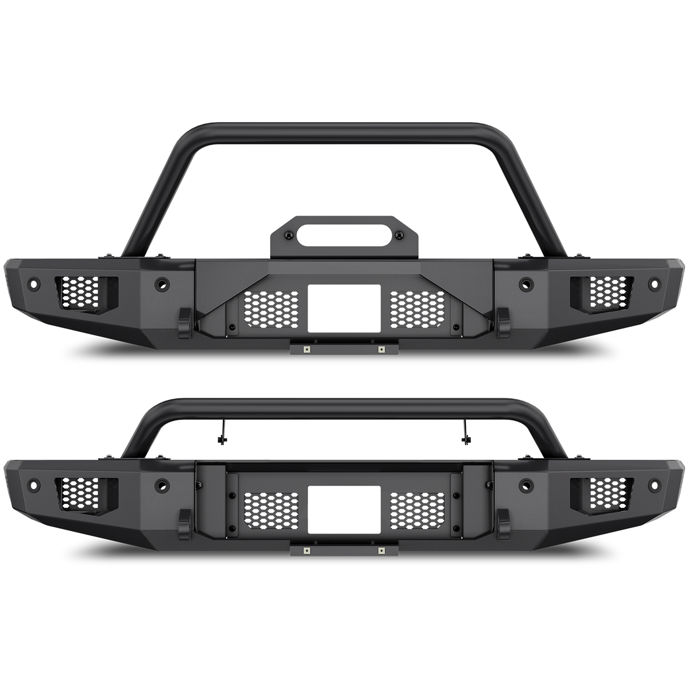 Our Odyssey Series Front Bumper is a highly adaptable accessory for off-road vehicles, offering the option to use it with or without a winch depending on individual needs. The bumper also includes a skid plate and both low and high profile hoops, which can be used to customize the bumper's look and protection level. With a winch capacity of up to 12,000lbs, the Odyssey Front Bumper can accommodate most standard winches, making it a reliable choice for navigating rough terrain.